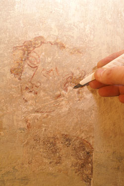 Wir führen Freilegungen sowohl an Raumfassungen und Wandmalereien als auch an Inventarstücken wie Altären und Figuren durch.