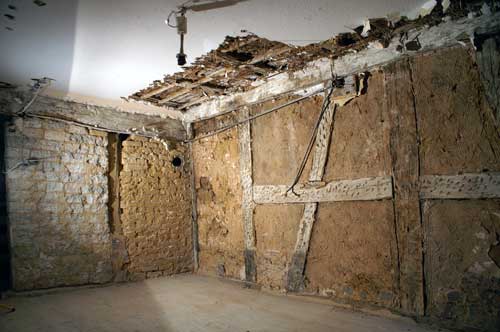 Fachwerkwand aus dem 18. Jh. und jüngere Massivwände aus Ziegel