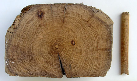 und schlechten Wachstumsjahren des Holzes in einem charakteristischen Muster der